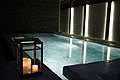 The marble pool equipped with a waterfall, a Jacuzzi area and Backyard Lounge with a bar.